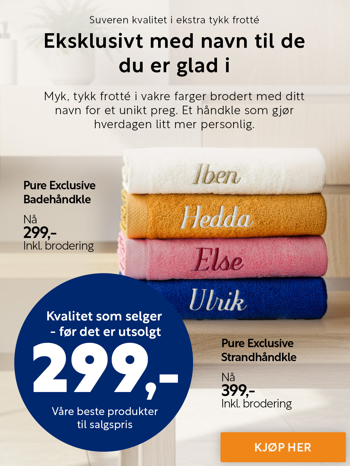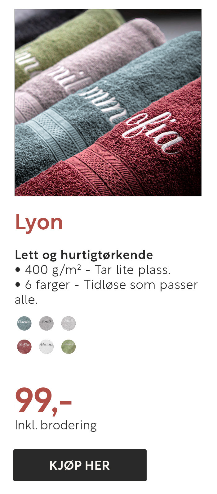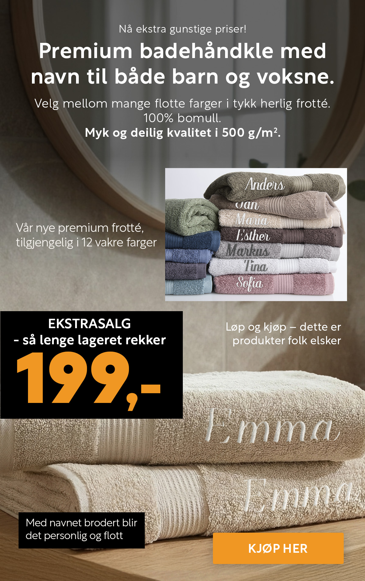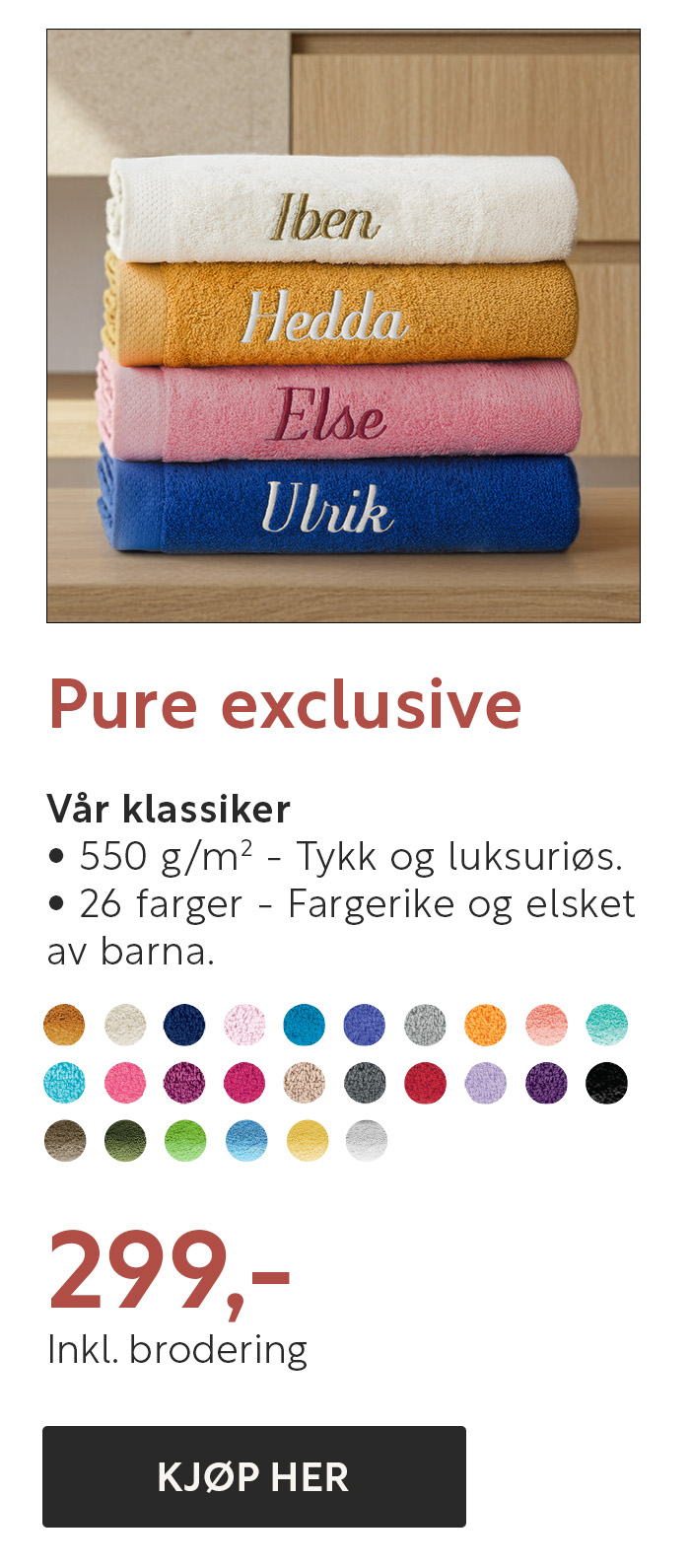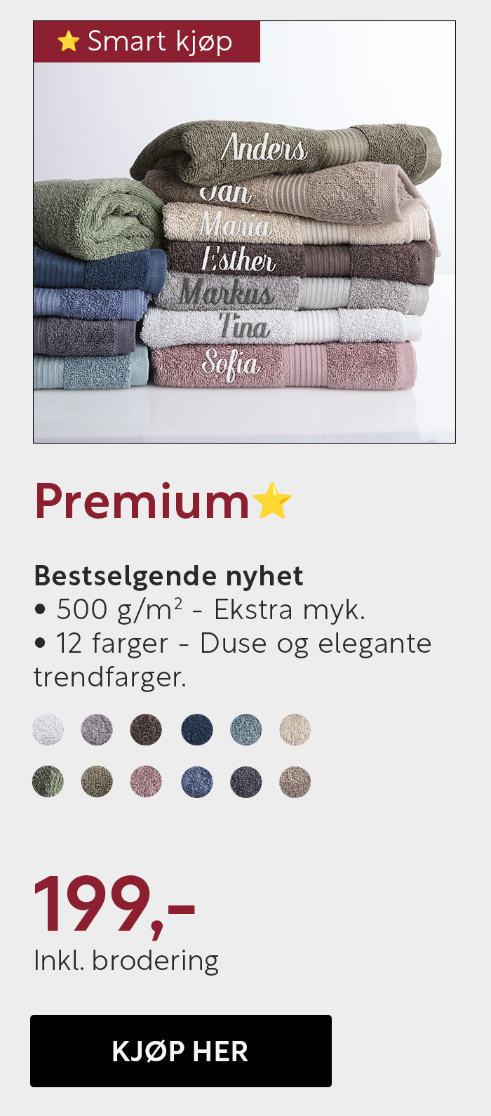 Bestselgende frotté i 6 forskjellige størrelser
