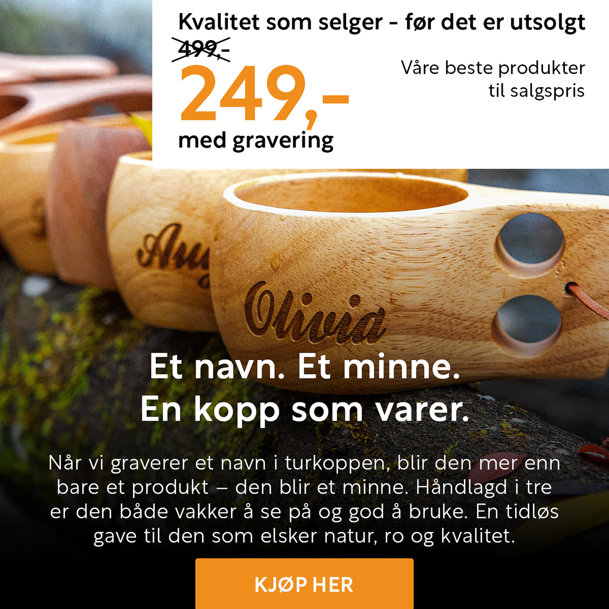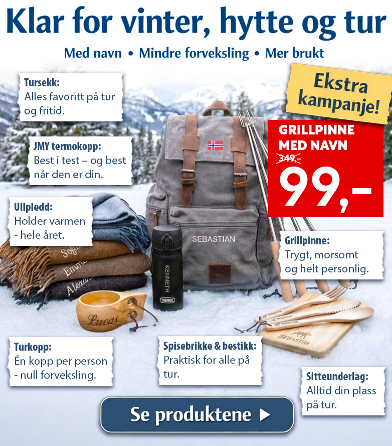 Praktiske turprodukter med navn – perfekt til hytta, fjellet og turer året rundt.