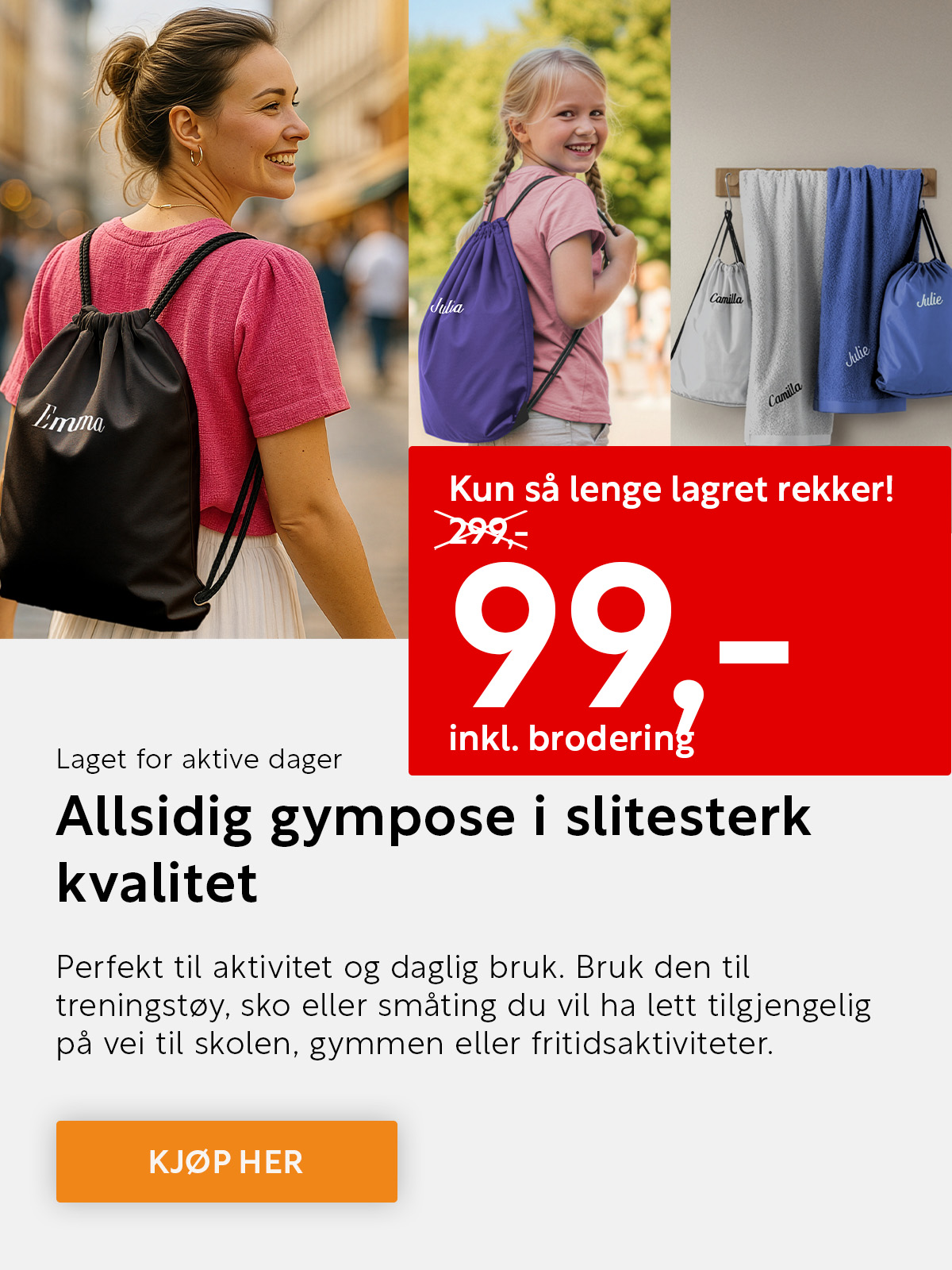 Nå kan du sikre deg våre populære grillpinner med navn, og få ekstra god pakkepris på sitteunderlag + grillpinne. Passer i tursekken, hytta og vårens utflukter. Perfekt til pølser, pinnebrød, marshmallows og annen bålkos. Husk én til hver, også til venner på besøk.