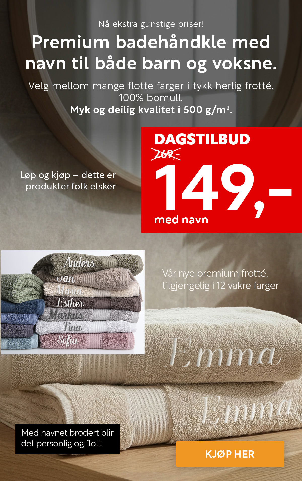 Bestselgende frotté i 6 forskjellige størrelser